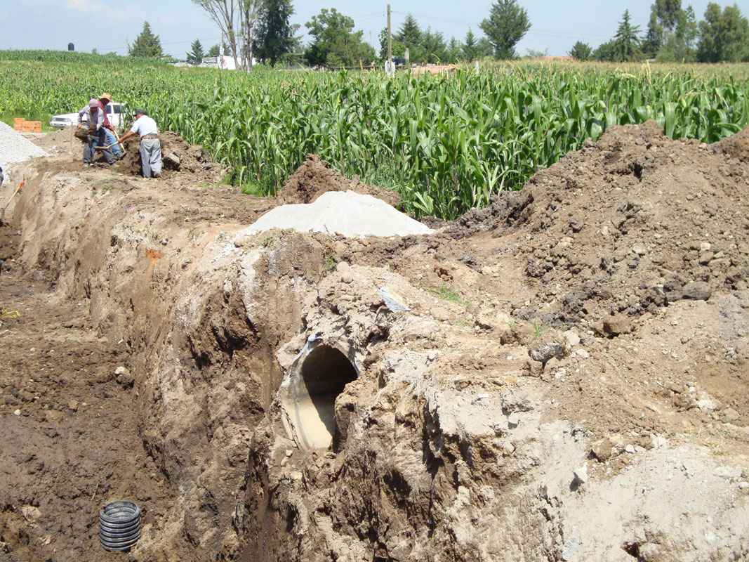 In order to dignify the agricultural and marginalized areas of the country, drainage systems, both mixed and separated, are constructed in different regions of the country with high density extruded polyethylene (HDPE) pipes, manholes, sub-collector boxes and collectors with pipes of concrete of 3.10 meters in diameter.